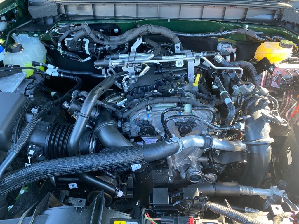 Crain Commitment - 100 Year or 100,000 Mile Powertrain Warranty included, Color Touch Screen Display, Premium Wheels, Performance Tires, Remote Start System, Parking Sensors, Adaptive Cruise Control, Blind Spot Information System, Forward Collision Alert, Rear Cross Traffic Alert, Lane Keep Assist, Hill Start Assist, Terrain Management, Tow Hooks, G.O.A.T. Modes, Bronco Big Bend, 4D Sport Utility, 4WD, Green, Blk Onyx Marine Grade Vin Cloth, 2-Door Intelligent Access w/Lock/Unlock, 7 Speakers, AM/FM Stereo, Ambient Footwell Lighting, Black Appearance Package, Black Molded-In-Color Door Handles, Black Molded-In-Color Fender Flares, Black Molded-In-Color Sideview Mirror Caps, Black-Painted Molded-In-Color Grille, BLIS Blind Spot Information System, Brake assist, Connected Navigation, Dr & Pass Illuminated Sliding Visor Vanity Mirrors, Dual Smart Charging USB Ports, Dual-Zone Electronic Automatic Temperature Control, Electronic Stability Control, Equipment Group 222A Mid Package, Front Row Heated Seats, Fully automatic headlights, Hard Top Sound Deadening Headliner, Heated door mirrors, Internet access capable: FordPass Connect, Lane-Keeping System, Power Outlet - Back Side of Center Floor Console, Pre-Collision Assist w/Automatic Emergency Braking, Rear Parking Sensors, Rear-Window Defroster & Washer, Remote keyless entry, Security system, Shadow Black Painted Hard Top, Side Step, SiriusXM w/360L, SYNC 4, Wheels: 17 Carbonized Gray-Painted Aluminum.