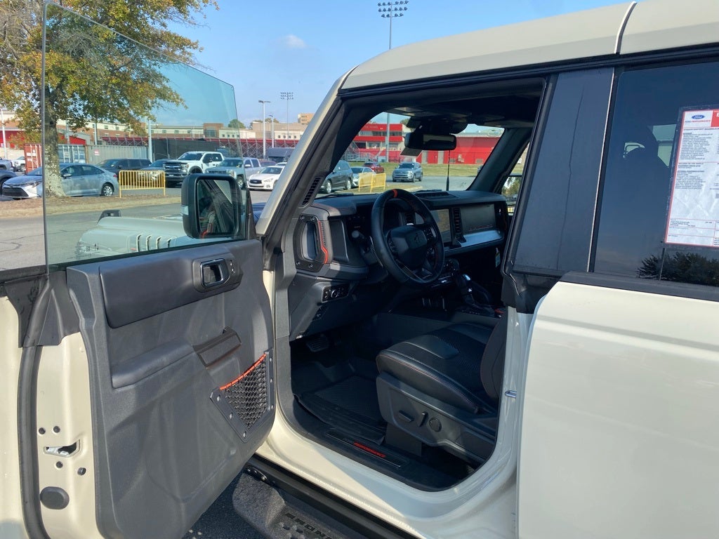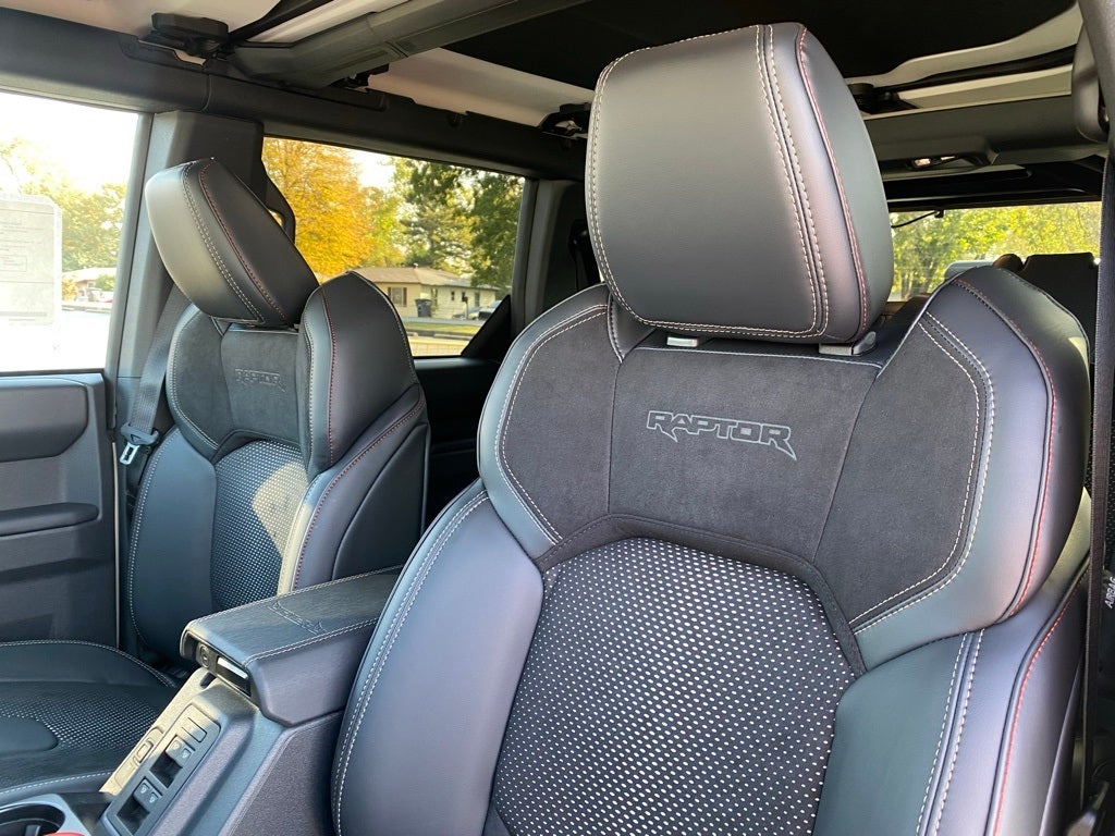 Apple CarPlay, Google Android Auto, Wi-Fi Hotspot, Adaptive Cruise Control, Blind Spot Information System, Forward Collision Alert, Rear Cross Traffic Alert, Lane Keep Assist, Bronco Raptor, 4D Sport Utility, 4WD, Desert Sand, Blk Onyx Lth Trmmed Vinyl, 4-Wheel Disc Brakes, Body Color-Painted Hard Top, Connected Navigation, Convertible HardTop, Convertible roof lining, Electronic Stability Control, Equipment Group 374A Lux Package, Exterior Parking Camera Rear, Front fog lights, Fully automatic headlights, Hard Top Sound Deadening Headliner, Heated front seats, Heated steering wheel, Marine Grade Vinyl Bucket Seats, Navigation system: Connected Navigation, Radio: B&O Sound System by Bang & Olufsen, Rear-Window Defroster & Washer, Remote keyless entry, Security system, SiriusXM w/360L, SYNC 4, Turn signal indicator mirrors, Wheels: 17 Black High Gloss-Painted Aluminum.