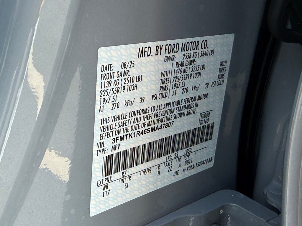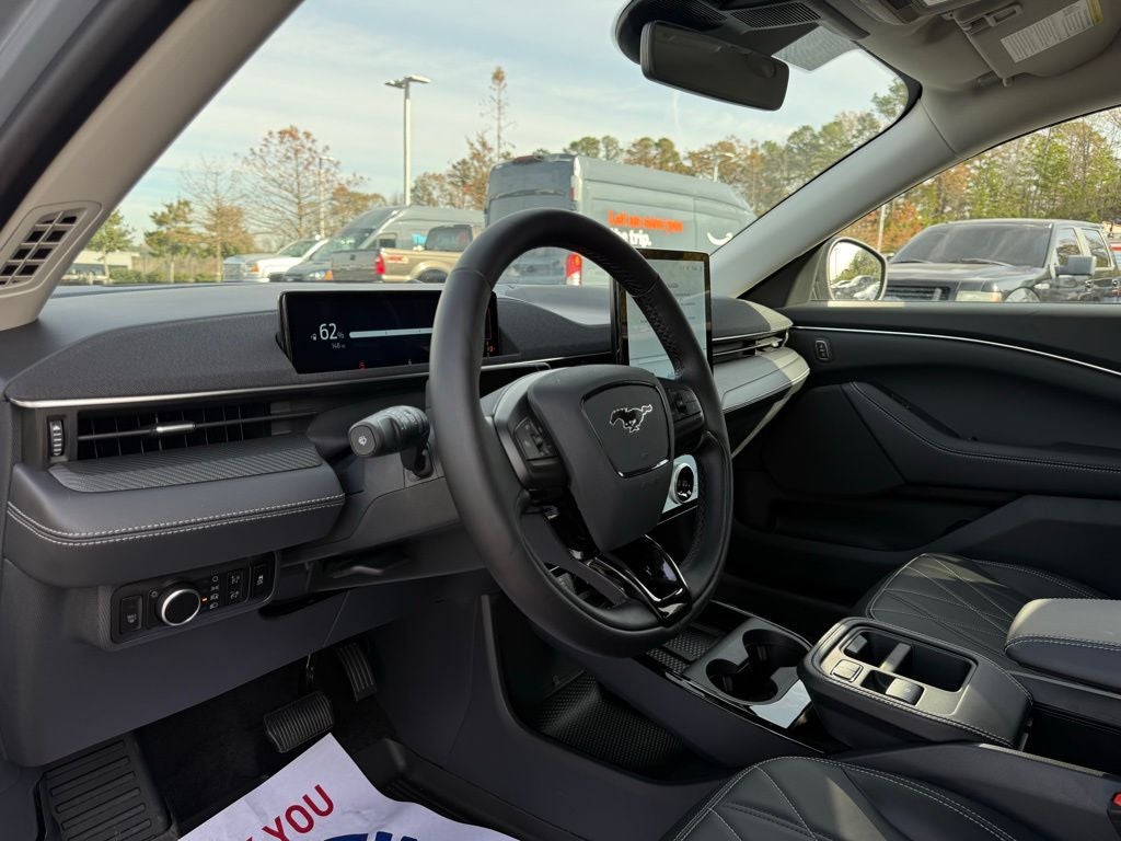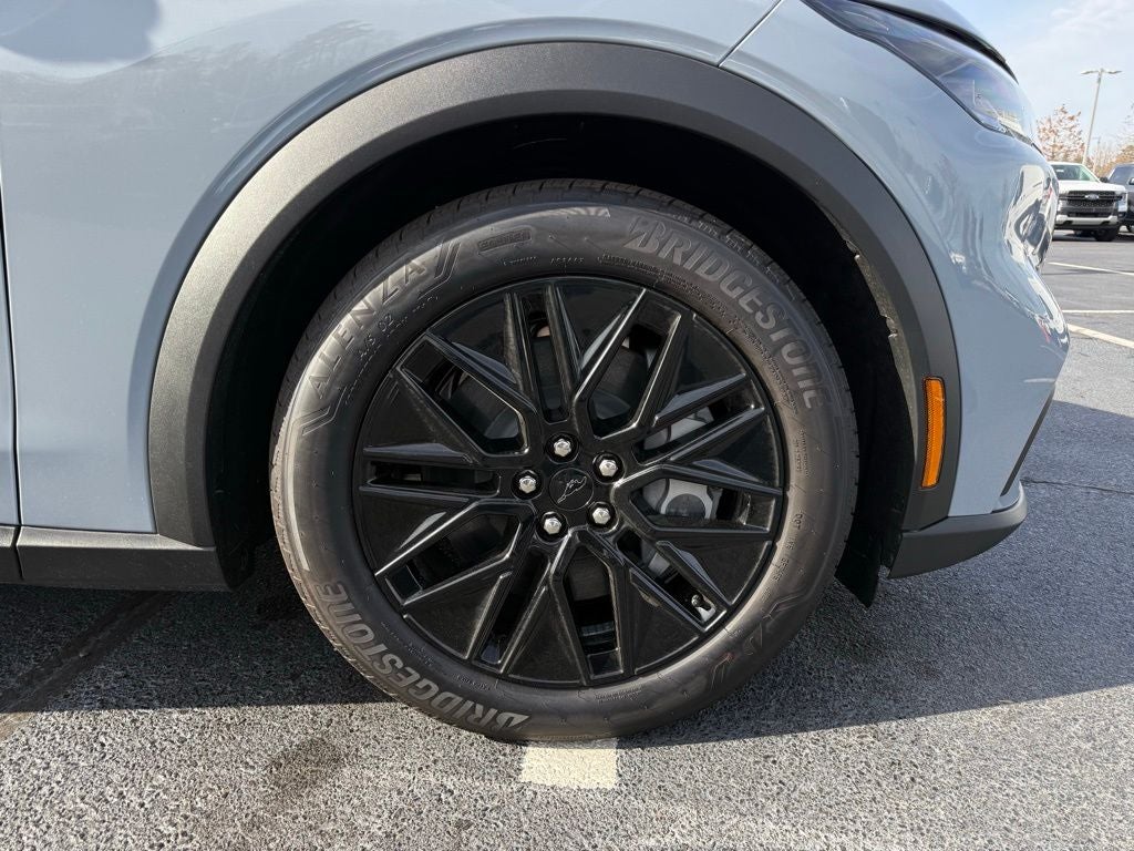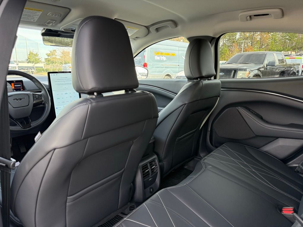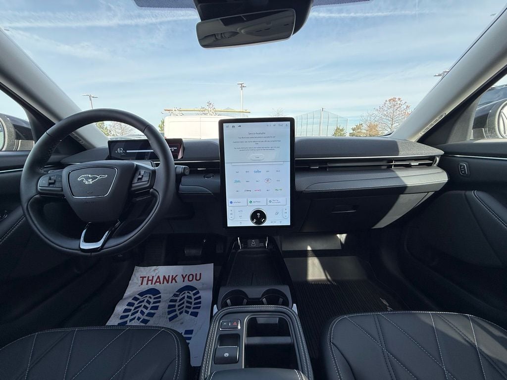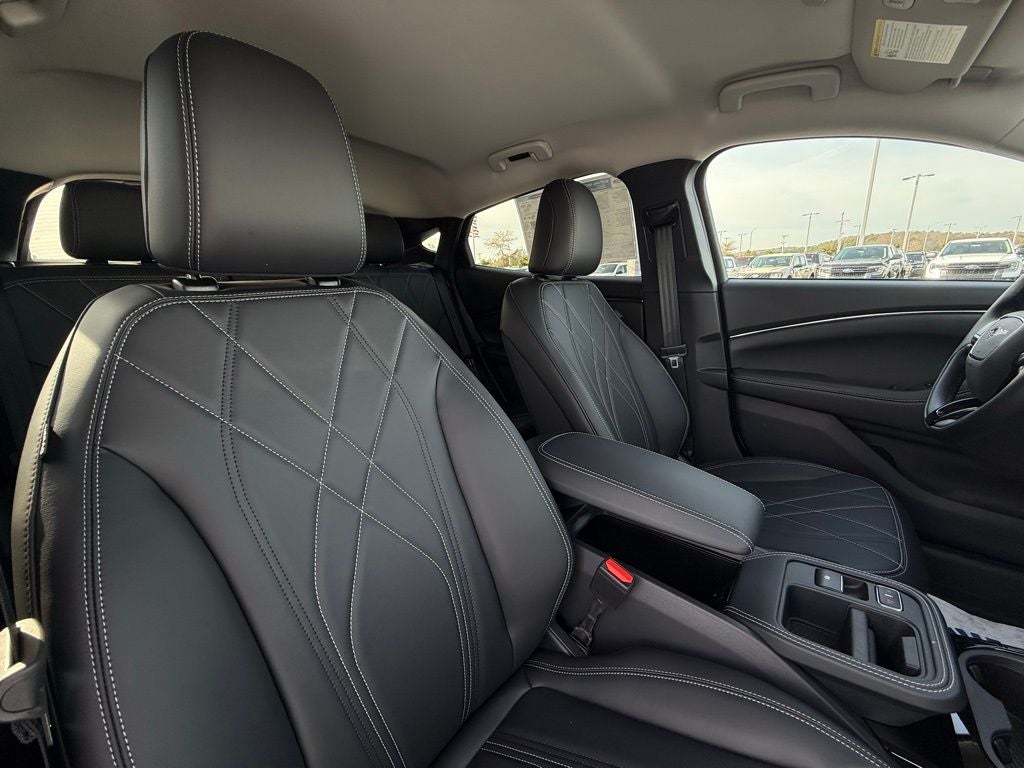 Equipment Group 100A Standard Package, Interior Protection Package (1st & 2nd Row Floor Liners w/o Carpet Mats, Cargo Area Cover, and Cargo Floor Liner), Mustang Mach-E Select, 4D Sport Utility, Electric Motor, Gray Metallic, Black Onyx Premium Synthetic, 4-Wheel Disc Brakes, 6 Speakers, ActiveX Bucket Seats, AM/FM Stereo, Apple CarPlay/Android Auto, Automatic temperature control, Brake assist, Electronic Stability Control, Exterior Parking Camera Rear, Four wheel independent suspension, Front Bucket Seats, Front Center Armrest, Front dual zone A/C, Fully automatic headlights, Heated door mirrors, Illuminated entry, Mobile Power Cord (120V/240V), NACS Fast Charging Adapter, Navigation system: Connected Navigation, Overhead console, Remote keyless entry, Security system, SiriusXM w/360L, Spoiler, Steering wheel mounted audio controls, SYNC 4A w/Enhanced Voice Recognition, Tire Inflator & Sealant Kit, Turn signal indicator mirrors, Wheels: 19 Monochromatic High Gloss Black-Painted, ABS brakes, Air Conditioning, Alloy wheels, Auto High-beam Headlights, Auto-dimming Rear-View mirror, Bumpers: body-color, Compass, Delay-off headlights, Driver door bin, Driver vanity mirror, Dual front impact airbags, Dual front side impact airbags, Emergency communication system: 911 Assist, Front anti-roll bar, Front reading lights, Garage door transmitter, Knee airbag, Low tire pressure warning, Occupant sensing airbag, Outside temperature display, Overhead airbag, Panic alarm, Passenger door bin, Passenger vanity mirror, Power door mirrors, Power driver seat, Power steering, Power windows, Radio data system, Rain sensing wipers, Rear anti-roll bar, Rear seat center armrest, Rear side impact airbag, Rear window defroster, Rear window wiper, Speed control, Speed-sensing steering, Speed-Sensitive Wipers, Split folding rear seat, Telescoping steering wheel, Tilt steering wheel, Traction control, Trip computer, and Variably intermittent wipers.