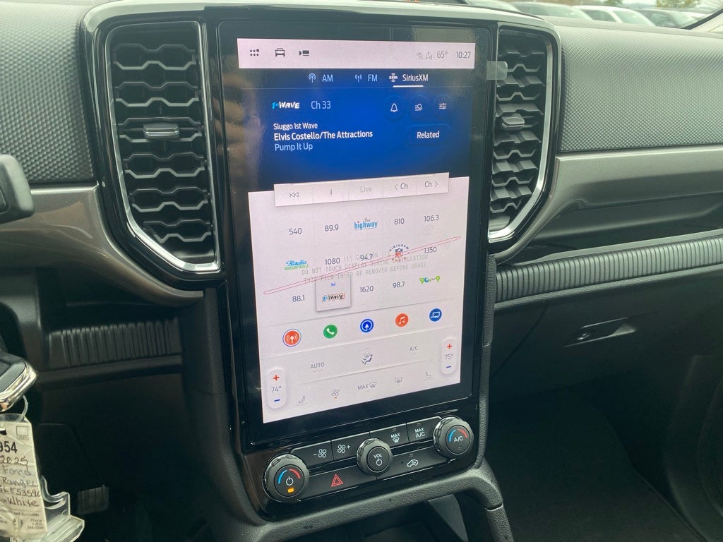 Equipment Group 301A High (12 Display in Center Stack, Cloth Front Heated Bucket Seats, Dual-Zone Electronic Climate Control (DEATC), and Power-Sliding Rear Window), Sport Appearance Package (Gray Painted Center Bar & Grille Surround, Gray Painted Front Fascia & Rear Bumper, and Sport Box Decal), Ranger XLT, 4D Crew Cab, 4WD, Oxford White, 3.73 Axle Ratio, 4-Wheel Disc Brakes, 6 Speakers, AM/FM Stereo, Auto High-beam Headlights, Brake assist, Electronic Stability Control, Front fog lights, Illuminated entry, Navigation system: Connected Navigation, Overhead console, Rear step bumper, Rear window defroster, Remote keyless entry, Security system, SiriusXM Satellite Radio, Speed-sensing steering, SYNC 4A w/Connected Navigation, Wheels: 17 Gray-Painted Aluminum, ABS brakes, Air Conditioning, Alloy wheels, Auto-dimming Rear-View mirror, Compass, Delay-off headlights, Driver door bin, Driver vanity mirror, Dual front impact airbags, Dual front side impact airbags, Emergency communication system: SYNC 4 911 Assist, Front anti-roll bar, Front Center Armrest, Front License Plate Bracket, Front reading lights, Front wheel independent suspension, Internet access capable: FordPass Connect 4G, Leather Shift Knob, Low tire pressure warning, Occupant sensing airbag, Outside temperature display, Overhead airbag, Panic alarm, Passenger door bin, Passenger vanity mirror, Power door mirrors, Power steering, Power windows, Rear reading lights, Rear seat center armrest, Speed control, Steering wheel mounted audio controls, Telescoping steering wheel, Tilt steering wheel, Traction control, Trip computer, Variably intermittent wipers, and Voltmeter.