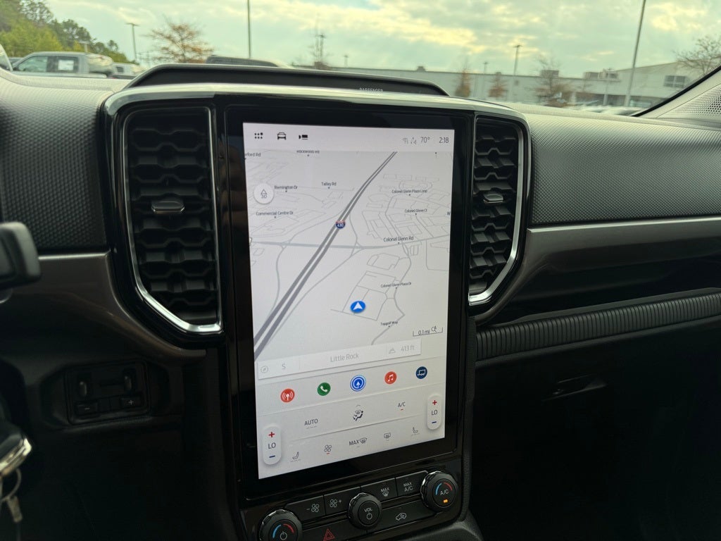 Advanced Towing Package (Pro Trailer Backup Assist and Trailer Brake Controller), Equipment Group 301A High (12 Display in Center Stack, Cloth Front Heated Bucket Seats, Dual-Zone Electronic Climate Control (DEATC), and Power-Sliding Rear Window), Sport Appearance Package (Gray Painted Center Bar & Grille Surround, Gray Painted Front Fascia & Rear Bumper, and Sport Box Decal), Trailer Tow Package (Class IV Trailer Hitch Receiver), Ranger XLT, 4D Crew Cab, 2.7L EcoBoost V6, 10-Speed Automatic, 4WD, Shadow Black, Sandstone Cloth, 4-Wheel Disc Brakes, 6 Speakers, AM/FM Stereo, Brake assist, Cloth Front Bucket Seats, Electronic Stability Control, Front fog lights, Fully automatic headlights, Illuminated entry, Internet access capable: FordPass Connect 4G, Navigation system: Connected Navigation, Overhead console, Rear step bumper, Remote keyless entry, Security system, SiriusXM Satellite Radio, Steering wheel mounted audio controls, SYNC 4A w/Connected Navigation, Tough Bed Spray-In Bedliner, Wheels: 17 Gray-Painted Aluminum, 3.73 Axle Ratio, ABS brakes, Air Conditioning, Alloy wheels, Auto-dimming Rear-View mirror, Compass, Delay-off headlights, Driver door bin, Driver vanity mirror, Dual front impact airbags, Dual front side impact airbags, Emergency communication system: SYNC 4 911 Assist, Front anti-roll bar, Front Center Armrest, Front License Plate Bracket, Front reading lights, Front wheel independent suspension, Leather Shift Knob, Low tire pressure warning, Occupant sensing airbag, Outside temperature display, Overhead airbag, Panic alarm, Passenger door bin, Passenger vanity mirror, Power door mirrors, Power steering, Power windows, Rear reading lights, Rear seat center armrest, Rear window defroster, Speed control, Speed-sensing steering, Telescoping steering wheel, Tilt steering wheel, Traction control, Trip computer, Variably intermittent wipers, and Voltmeter.