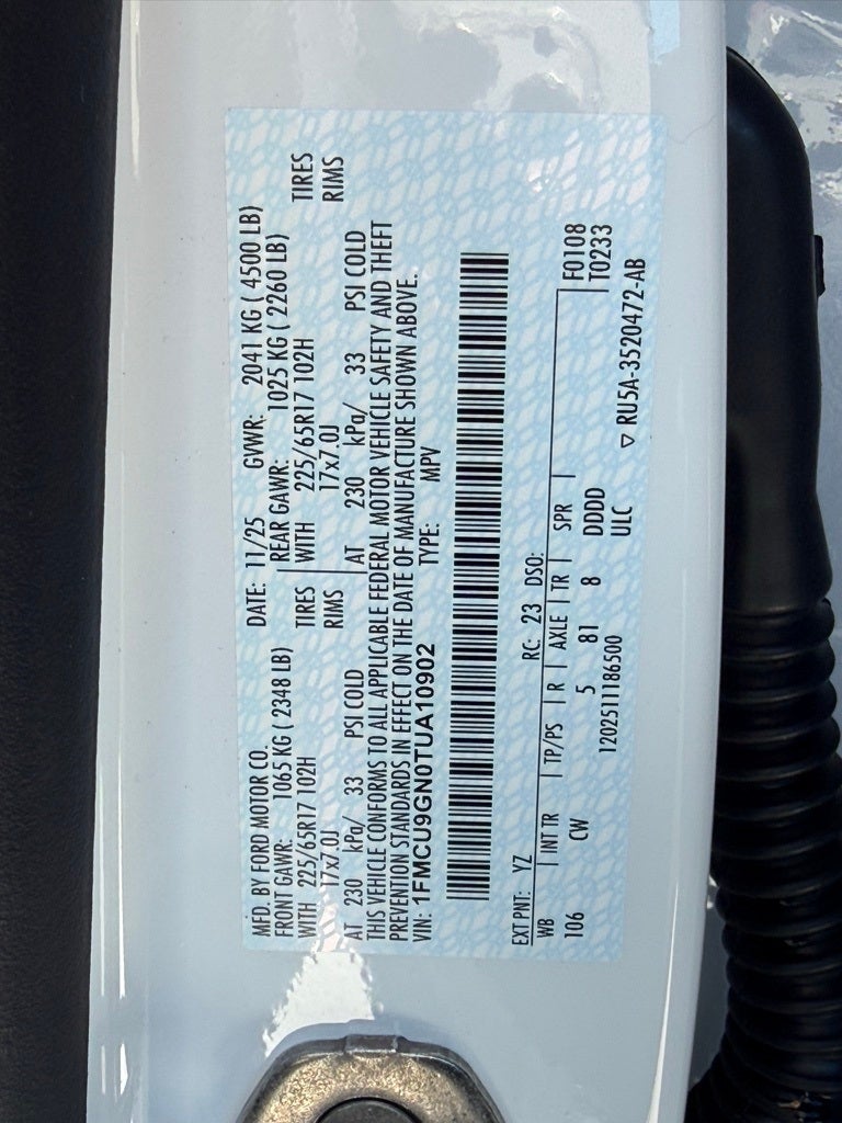 Performance Tires, Blind Spot Warning System, Rear Cross Traffic Alert, Lane Keep Assist, Forward Collision ALert, Wi-Fi Hotspot, Color Touch Screen Display, Backup Camera, Premium Wheels, Escape Active, 4D Sport Utility, AWD, Oxford White, Gray Cloth, 3.81 Axle Ratio, 4-Way Manual Front Passenger Seat, 4-Wheel Disc Brakes, 6-Way Manual Driver Seat, Adaptive Cruise Control with Stop-and-Go, Automatic temperature control, Brake assist, Connected Navigation (1-Year Included), Digital Rear View Camera, Electronic Stability Control, Equipment Group 200A, Evasive Steering Assist, Ford App, Ford Co-Pilot360 Assist+, Four wheel independent suspension, Front dual zone A/C, Fully automatic headlights, Intersection Assist, Predictive Speed Assist, Radio: AM/FM Stereo with SiriusXM 360L, Rear Parking Sensor, Remote keyless entry, Spoiler, Steering wheel mounted audio controls, SYNC 4, SYNC 4 with Enhanced Voice Recognition, Tech Pack #1, Unique Cloth Front Bucket Seats, Wheels: 17 Shadow Silver-Painted Aluminum.