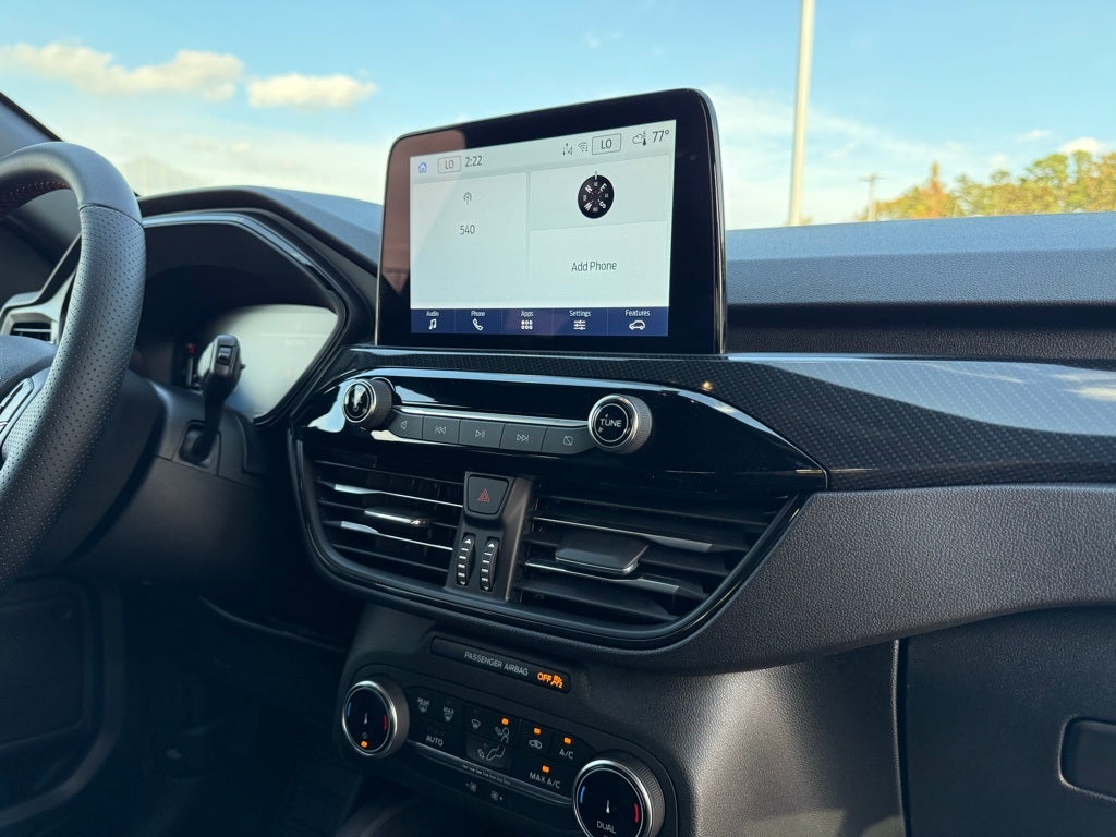 Blind Spot Warning System, Rear Cross Traffic Alert, Lane Keep Assist, Forward Collision ALert, Backup Camera, Premium Wheels, Escape ST-Line, 4D Sport Utility, AWD, Silver Metallic, Ebony Vinyl, 4-Wheel Disc Brakes, Equipment Group 300A, Ford App, Four wheel independent suspension, Front dual zone A/C, Fully automatic headlights, Illuminated entry, Overhead console, Spoiler, Sport steering wheel, SYNC 4, Wheels: 18 Rock Metallic Painted Aluminum.