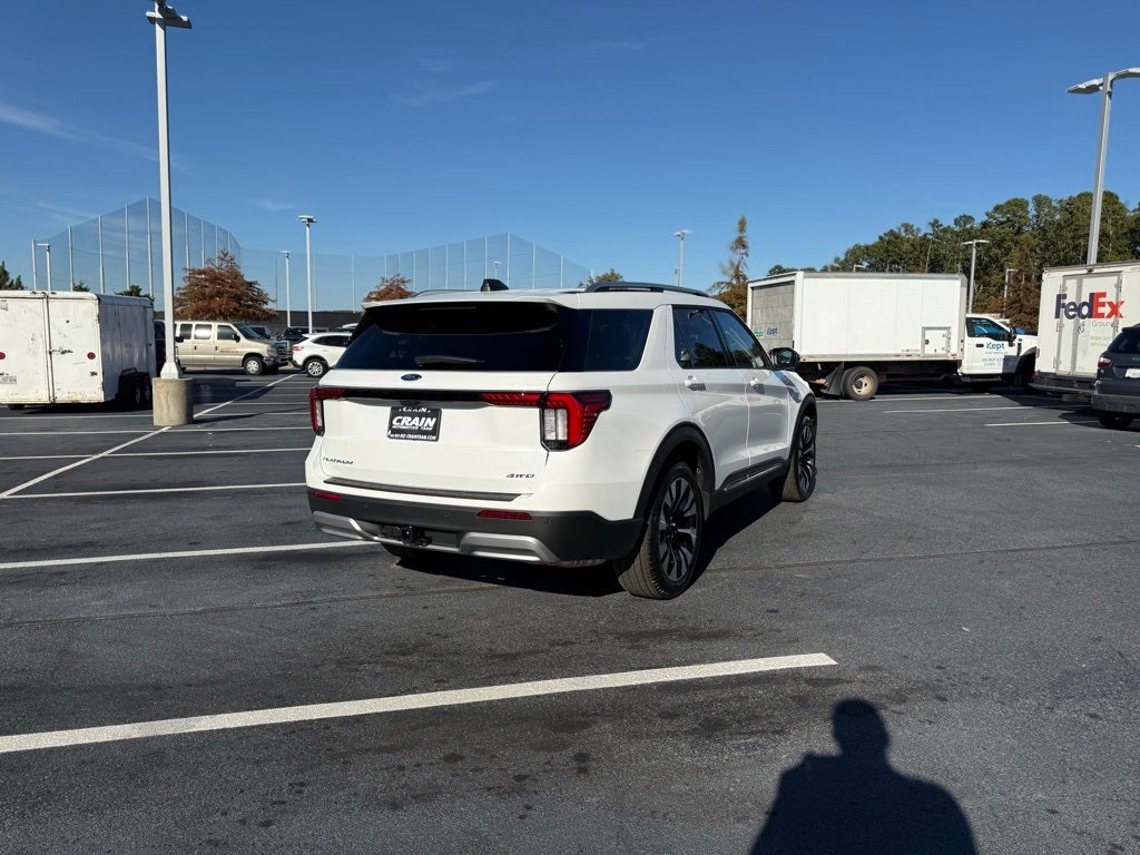 Equipment Group 600A Standard Package (Radio: B&O Sound System by Bang & Olufsen with HD), Lux Leather Package (Platinum Badges on Front Row Seats and Premium Leather Seating Surfaces Captain's Chairs), Explorer Platinum, 4WD, White Metallic, Salt Crystal/Onyx Leather, 14 Speakers, 3rd row seats: bench, AM/FM radio: SiriusXM with 360L, Automatic temperature control, Brake assist, Electronic Stability Control, Exterior Parking Camera Rear, Four wheel independent suspension, Front dual zone A/C, Front fog lights, Fully automatic headlights, Heated door mirrors, Heated front seats, Heated rear seats, Heated steering wheel, Memory seat, Navigation System, Power Liftgate, Rear air conditioning, Remote keyless entry, Security system, Spoiler, Ventilated front seats, Wheels: : 21 Bright Machined Aluminum w/Tarnish Dark Pockets, 4-Wheel Disc Brakes, ABS brakes, Air Conditioning, Alloy wheels, Auto-dimming door mirrors, Auto-dimming Rear-View mirror, Bumpers: body-color, Compass, Delay-off headlights, Driver door bin, Driver vanity mirror, Dual front impact airbags, Dual front side impact airbags, Emergency communication system: 911 Assist, Front anti-roll bar, Front Center Armrest, Front License Plate Bracket, Front reading lights, Garage door transmitter, Illuminated entry, Knee airbag, Leather steering wheel, Low tire pressure warning, Occupant sensing airbag, Outside temperature display, Overhead airbag, Overhead console, Panic alarm, Passenger door bin, Passenger vanity mirror, Power door mirrors, Power driver seat, Power passenger seat, Power steering, Power windows, Radio data system, Rain sensing wipers, Rear anti-roll bar, Rear reading lights, Rear window defroster, Rear window wiper, Speed control, Speed-sensing steering, Speed-Sensitive Wipers, Split folding rear seat, Steering wheel mounted audio controls, Tachometer, Telescoping steering wheel, Tilt steering wheel, Traction control, Trip computer, Turn signal indicator mirrors, and Variably intermittent wipers.