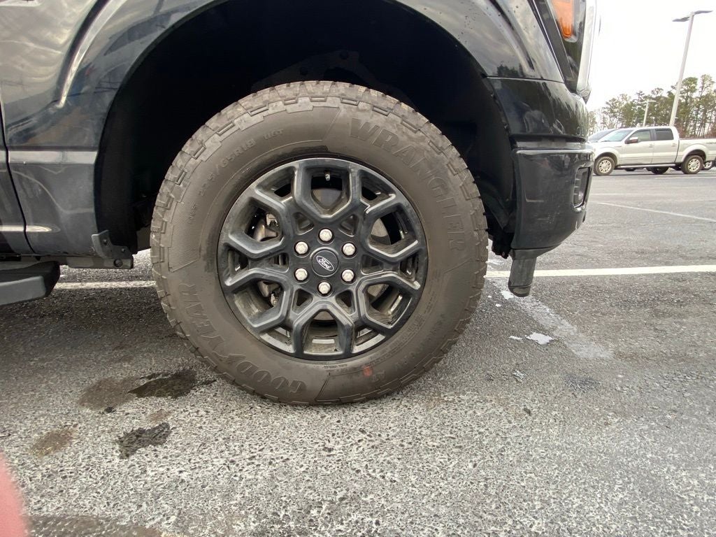 Equipment Group 500A Standard (3.31 Axle Ratio, ActiveX Trimmed Bucket Seats, Radio: B&O Sound System by Bang and Olufsen, and SYNC 4 with Enhanced Voice Recognition), Ford Connectivity Package (1-Year Included), Internet access capable: 5G Modem - Ford Connectivity Package, Lariat Black Appearance Package (Black Exterior Badging, Black Grille, Black Taillamp Bezels, Body-Color Front and Rear Bumpers, Dark Interior Appliques, and Gray Box Side Decal), F-150 Lariat, 4D SuperCrew, 5.0L V8, 10-Speed Automatic, 4WD, Black Metallic, Black, AM/FM radio: SiriusXM with 360L, Auto High-beam Headlights, Auto-dimming Rear-View mirror, Automatic temperature control, Electronic Stability Control, Front Center Armrest, Front dual zone A/C, Front fog lights, Heated front seats, Heated steering wheel, Memory seat, Navigation system: Connected Navigation, Rear step bumper, Remote keyless entry, Security system, Tough Bed Spray-in Bedliner, Turn signal indicator mirrors, Ventilated front seats, Wheel Well Liner, Wheels: 18 Gloss Black, 4-Wheel Disc Brakes, ABS brakes, Air Conditioning, Alloy wheels, Auto-dimming door mirrors, Brake assist, Bumpers: chrome, Compass, Delay-off headlights, Driver door bin, Driver vanity mirror, Dual front impact airbags, Dual front side impact airbags, Emergency communication system: SYNC 4 911 Assist, Front anti-roll bar, Front reading lights, Front wheel independent suspension, Fully automatic headlights, Garage door transmitter, Heated door mirrors, Illuminated entry, Low tire pressure warning, Occupant sensing airbag, Outside temperature display, Overhead airbag, Overhead console, Panic alarm, Passenger door bin, Passenger vanity mirror, Power door mirrors, Power driver seat, Power passenger seat, Power steering, Power windows, Radio data system, Rain sensing wipers, Rear reading lights, Rear seat center armrest, Rear window defroster, Speed control, Split folding rear seat, Steering wheel mounted audio controls, Tachometer, Telescoping steering wheel, Tilt steering wheel, Traction control, Trip computer, and Variably intermittent wipers.