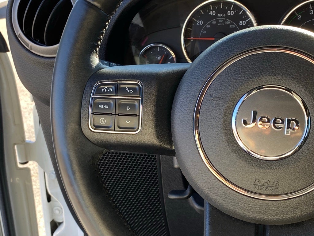 4-Wheel Disc Brakes, 8 Speakers, ABS brakes, Air Conditioning, AM/FM radio, Anti-Spin Differential Rear Axle, Black 3-Piece Hard Top, Brake assist, CD player, Cloth Seats w/Adjustable Head Restraints, Compass, Connectivity Group, Delete Sunrider Soft Top, Driver vanity mirror, Dual front impact airbags, Electronic Stability Control, Freedom Panel Storage Bag, Front anti-roll bar, Front Bucket Seats, Front Center Armrest w/Storage, Front fog lights, Integrated roll-over protection, Low tire pressure warning, Normal Duty Suspension, Occupant sensing airbag, Outside temperature display, Passenger door bin, Passenger vanity mirror, Power steering, Radio: 130, Rear anti-roll bar, Rear Window Defroster, Rear Window Wiper/Washer, Remote USB Port, Speed control, Split folding rear seat, Steering wheel mounted audio controls, Tire Pressure Monitoring Display, Traction control, Uconnect Voice Command w/Bluetooth®, Variably intermittent wipers, Vehicle Information Center.