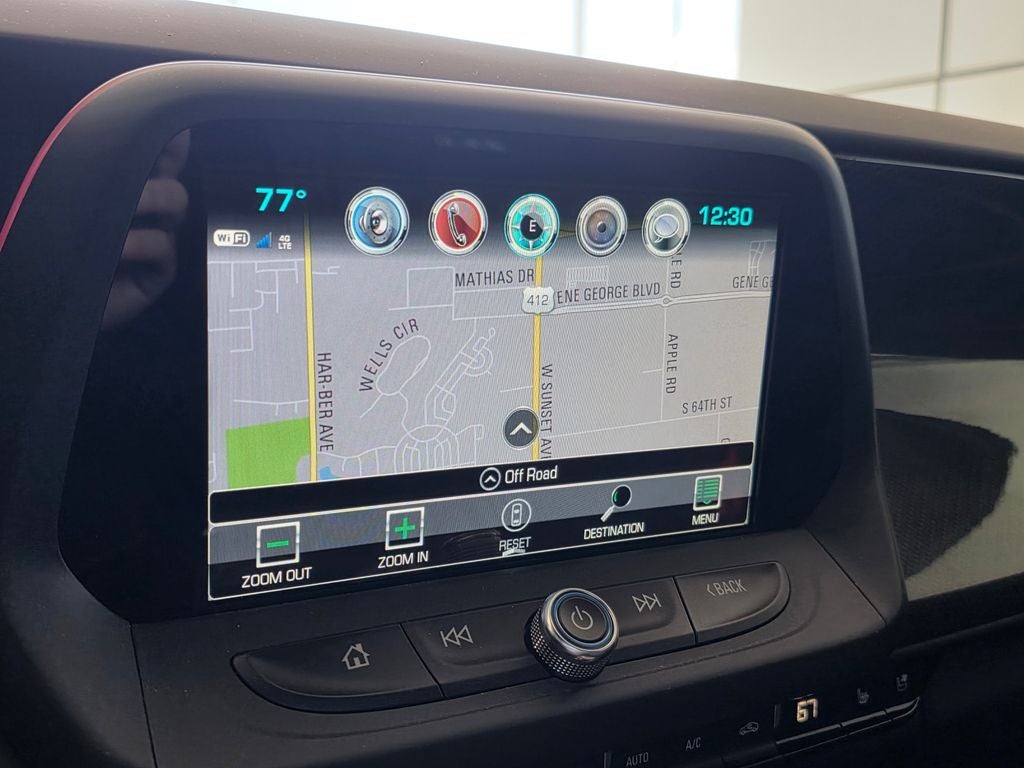 - Audio system, Chevrolet MyLink Radio with 8" diagonal color touch-screen, AM/FM stereo with seek-and-scan and digital clock includes Bluetooth® streaming audio for music and select phones; voice-activated technology for radio and phone; featuring Android Auto and Apple CarPlay capability for compatible phone and Shop with the ability to browse, select and install apps to your vehicle. Apps include Pandora, iHeartRadio, The Weather Channel and more