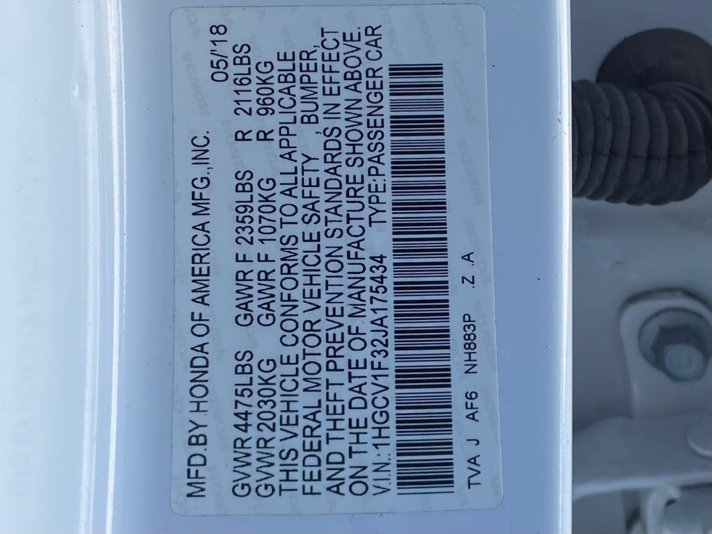 2018 Accord Sport, 4D Sedan, 1.5T I4 DOHC 16V Turbocharged VTEC, CVT, FWD, Cloth, 4-Wheel Disc Brakes, 8 Speakers, ABS brakes, Air Conditioning, Alloy wheels, Apple CarPlay/Android Auto, Auto High-beam Headlights, Automatic temperature control, Brake assist, Bumpers: body-color, Cloth Seat Trim, Delay-off headlights, Driver door bin, Driver vanity mirror, Dual front impact airbags, Dual front side impact airbags, Electronic Stability Control, Emergency communication system: HondaLink, Exterior Parking Camera Rear, Four wheel independent suspension, Front anti-roll bar, Front Bucket Seats, Front Center Armrest, Front dual zone A/C, Front fog lights, Front reading lights, Fully automatic headlights, Illuminated entry, Knee airbag, Leather Shift Knob, Leather steering wheel, Low tire pressure warning, Occupant sensing airbag, Outside temperature display, Overhead airbag, Overhead console, Panic alarm, Passenger door bin, Passenger vanity mirror, Power door mirrors, Power driver seat, Power steering, Power windows, Radio: 180-Watt AM/FM Audio System, Rear anti-roll bar, Rear seat center armrest, Rear window defroster, Remote keyless entry, Security system, Speed-sensing steering, Speed-Sensitive Wipers, Split folding rear seat, Spoiler, Steering wheel mounted audio controls, Tachometer, Telescoping steering wheel, Tilt steering wheel, Traction control, Trip computer, Variably intermittent wipers, Wheels: 19 Machine-Finished Alloy w/Black Inserts.
