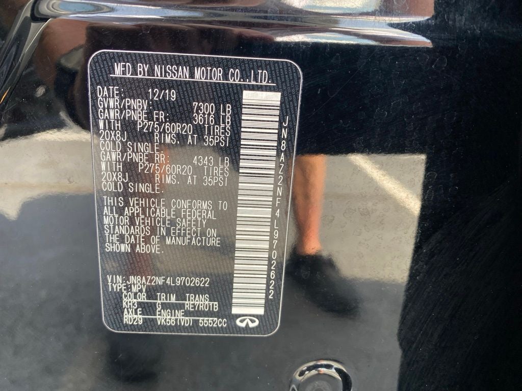 2020 INFINITI QX80 LUXE QX80 LUXE, 4D Sport Utility, 5.6L V8, 7-Speed Automatic, RWD, Black Obsidian, Graphite w/Leather-Appointed Seats or Semi-Aniline Leather-Appointed Seating w/Quilting, Apple CarPlay/Android Auto, Blind Spot Intervention (BSI), Heated Front Bucket Seats, Heated steering wheel, Intelligent Cruise Control, Lane Departure Prevention (LDP), Leather steering wheel, Leather-Appointed Seats, Memory seat, Navigation system: INFINITI InTouch Navigation, Power driver seat, Power moonroof, Power passenger seat, ProASSIST Package, Remote keyless entry, Smart Rear View Mirror, Steering wheel mounted audio controls.