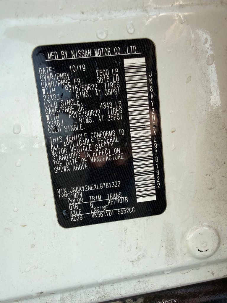 Armada Platinum, 4D Sport Utility, 5.6L V8, 7-Speed Automatic, 4WD, Pearl White Tricoat, Black Leather.