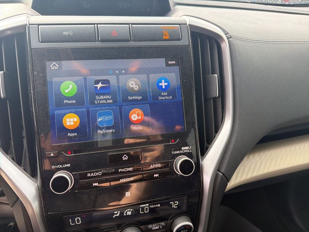 - Radio: Subaru STARLINK 8.0" Multimedia Plus System -inc: AM/FM stereo HD Radio w/single disc CD player, MP3/WMA/CRR/RW file capability, multi-touch gesture high resolution LCD display screen, voice activated controls, Bluetooth® audio streaming connectivity, Bluetooth® hands-free phone connectivity, Bluetooth® hands-free SMS text messaging connectivity (applicable w/compatible cell phone), Near Field Communication (NFC), iPod control capability, SiriusXM All Access radio (subscription required), SiriusXM Travel Link (subscription required), smartphone integration for Aha, Android Auto, CarPlay and Pandora, STARLINK cloud applications, steering wheel controls for audio and Bluetooth®, 6 speakers, 3.5mm auxiliary input jack and front and rear dual USB ports