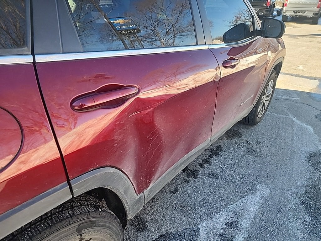 100 Hour Love It or Leave It Exchange Policy, 100 Year or 100,000 Mile Power-Train Warranty, *** 1 Owner CARFAX ***, *** Clean CARFAX ***, Heated Seats, Cruise Control, Steering Wheel Controls, Keyless Entry, Bluetooth®, USB / AUV Ports, MP3 Player, SiriusXM Satellite Radio, Remote Start System, Wireless Apple CarPlay, Wireless Google Android Auto, Alloy Wheels, Premium Wheels, Blind Spot Warning System, Lane Keep Assist, Forward Collision Alert, Premium Audio, Color Touchscreen Display, Backup / Rear View Camera, ParkView, RainSensitive Windshield Wipers, ParkSense, Cherokee Latitude Plus, 4D Sport Utility, 2.4L I4, 9-Speed 948TE Automatic, 4WD, Velvet Red Pearlcoat, Black w/Cloth Bucket Seats or Cloth Bucket Seats (AJ), 3.734 Axle Ratio, 4-Wheel Disc Brakes, 6 Speakers, ABS brakes, Air Conditioning, Alloy wheels, AM/FM radio: SiriusXM, Anti-whiplash front head restraints, Apple CarPlay/Android Auto, Brake assist, Bumpers: body-color, Cloth/Premium Vinyl Bucket Seats, Compass, Delay-off headlights, Driver door bin, Driver vanity mirror, Dual front impact airbags, Dual front side impact airbags, Electronic Stability Control, Four wheel independent suspension, Front anti-roll bar, Front Bucket Seats, Front Center Armrest, Front fog lights, Front License Plate Bracket, Front reading lights, Fully automatic headlights, Heated door mirrors, Heated front seats, Heated steering wheel, Illuminated entry, Knee airbag, Leather Shift Knob, Liquid Titanium Accents, Liquid Titanium Door Trim Appliques, Low tire pressure warning, Normal Duty Suspension, Occupant sensing airbag, Outside temperature display, Overhead airbag, Overhead console, Panic alarm, ParkView Rear Back-Up Camera, Passenger door bin, Passenger vanity mirror, Power door mirrors, Power driver seat, Power steering, Power windows, Quick Order Package 2BD, Radio data system, Radio: Uconnect 4 w/7 Display, Rain sensing wipers, Rear anti-roll bar, Rear reading lights, Rear seat center armrest, Rear side impact airbag, Rear window defroster, Rear window wiper, Remote keyless entry, Speed control, Speed-sensing steering, Split folding rear seat, Spoiler, Steering wheel mounted audio controls, Tachometer, Telescoping steering wheel, Tilt steering wheel, Traction control, Trip computer, Turn signal indicator mirrors, Variably intermittent wipers, Voltmeter, Wheels: 17 x 7 Satin Carbon Aluminum.