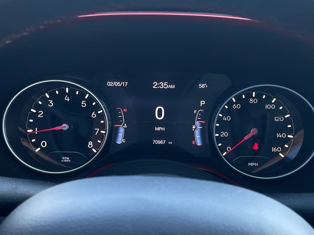 4WD, 17 x 6.5 Aluminum Wheels, 4-Wheel Disc Brakes, 4.334 Axle Ratio, 6 Speakers, ABS brakes, Air Conditioning, Alloy wheels, AM/FM radio: SiriusXM, Anti-whiplash front head restraints, Apple CarPlay/Android Auto, Auto High-beam Headlights, Auto-dimming Rear-View mirror, Automatic temperature control, Brake assist, Bumpers: body-color, Compass, Delay-off headlights, Driver door bin, Driver vanity mirror, Dual front impact airbags, Dual front side impact airbags, Electronic Stability Control, Four wheel independent suspension, Front anti-roll bar, Front Bucket Seats, Front Center Armrest w/Storage, Front dual zone A/C, Front fog lights, Front License Plate Bracket, Front reading lights, Fully automatic headlights, Heated door mirrors, Illuminated entry, Knee airbag, Leather Shift Knob, Low tire pressure warning, Manufacturer's Statement of Origin, Occupant sensing airbag, Outside temperature display, Overhead airbag, Overhead console, Panic alarm, ParkView Rear Back-Up Camera, Passenger door bin, Passenger vanity mirror, Power door mirrors, Power steering, Power windows, Premium Cloth/Leather Trim Bucket Seats, Quick Order Package 2GE, Radio: Uconnect 4 w/8.4 Display, Rain sensing wipers, Rear anti-roll bar, Rear seat center armrest, Rear window defroster, Rear window wiper, Remote keyless entry, Roof rack: rails only, Security system, Speed control, Split folding rear seat, Spoiler, Steering wheel mounted audio controls, Tachometer, Telescoping steering wheel, Tilt steering wheel, Traction control, Trip computer, Turn signal indicator mirrors, Variably intermittent wipers, 4WD.