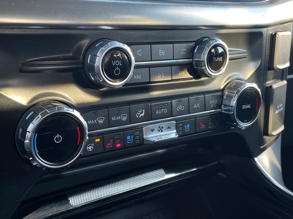 4WD, 18 Machined-Aluminum Wheels, 360 Degree Camera, 4-Wheel Disc Brakes, 6 Bright Polished Running Board, 7 Speakers, ABS brakes, Adjustable pedals, Air Conditioning, Alloy wheels, AM/FM radio: SiriusXM with 360L, Auto High-beam Headlights, Auto-dimming door mirrors, Auto-dimming Rear-View mirror, Automatic temperature control, Bed Utility Package, BoxLink, Brake assist, Bumpers: chrome, Chrome 2-Bar Grille w/4 Minor Bars, Chrome Door & Tailgate Handles w/Body-Color Bezel, Chrome Single-Tip Exhaust, Chrome Skull Caps on Exterior Mirrors, Class IV Trailer Hitch Receiver, Compass, Connected Built-In Navigation, Delay-off headlights, Driver door bin, Driver vanity mirror, Dual front impact airbags, Dual front side impact airbags, Electronic Stability Control, Emergency communication system: SYNC 4 911 Assist, Engine Block Heater, Equipment Group 502A High, Evasive Steering Assist, Extended Range 36 Gallon Fuel Tank, Exterior Parking Camera Rear, Ford Co-Pilot360 Assist 2.0 (DISC), Front anti-roll bar, Front Center Armrest w/Storage, Front dual zone A/C, Front fog lights, Front License Plate Bracket, Front reading lights, Front wheel independent suspension, Fully automatic headlights, FX4 Off-Road Package, Heated door mirrors, Heated front seats, Illuminated entry, Integrated Trailer Brake Controller, Intelligent Adaptive Cruise Control w/Stop & Go, Intersection Assist, Lariat Chrome Appearance Package, Leather-Trimmed 40/20/40 Front Seat, LED Box Lighting, LED Sideview Mirror Spotlights, Low tire pressure warning, Memory seat, Occupant sensing airbag, Outside temperature display, Overhead airbag, Overhead console, Panic alarm, Passenger door bin, Passenger vanity mirror, Pedal memory, Power door mirrors, Power driver seat, Power passenger seat, Power steering, Power Tailgate, Power Telescoping/Glass/Folding Trailer Tow Mirrors, Power windows, Pro Trailer Backup Assist, Radio data system, Radio: AM/FM SiriusXM w/360L, Rear reading lights, Rear seat center armrest, Rear step bumper, Rear window defroster, Remote keyless entry, Security system, Speed control, Speed Sign Recognition, Speed-sensing steering, Split folding rear seat, Steering wheel mounted audio controls, SYNC 4 w/Enhanced Voice Recognition, Tachometer, Tailgate Step w/Tailgate Work Surface, Telescoping steering wheel, Tilt steering wheel, Tough Bed Spray-In Bedliner, Traction control, Trailer Tow Package, Tray Style Floor Liner (47W), Trip computer, Turn signal indicator mirrors, Variably intermittent wipers, Ventilated front seats, Voltmeter, Wheels: 18 Chrome-Like PVD, 4WD.