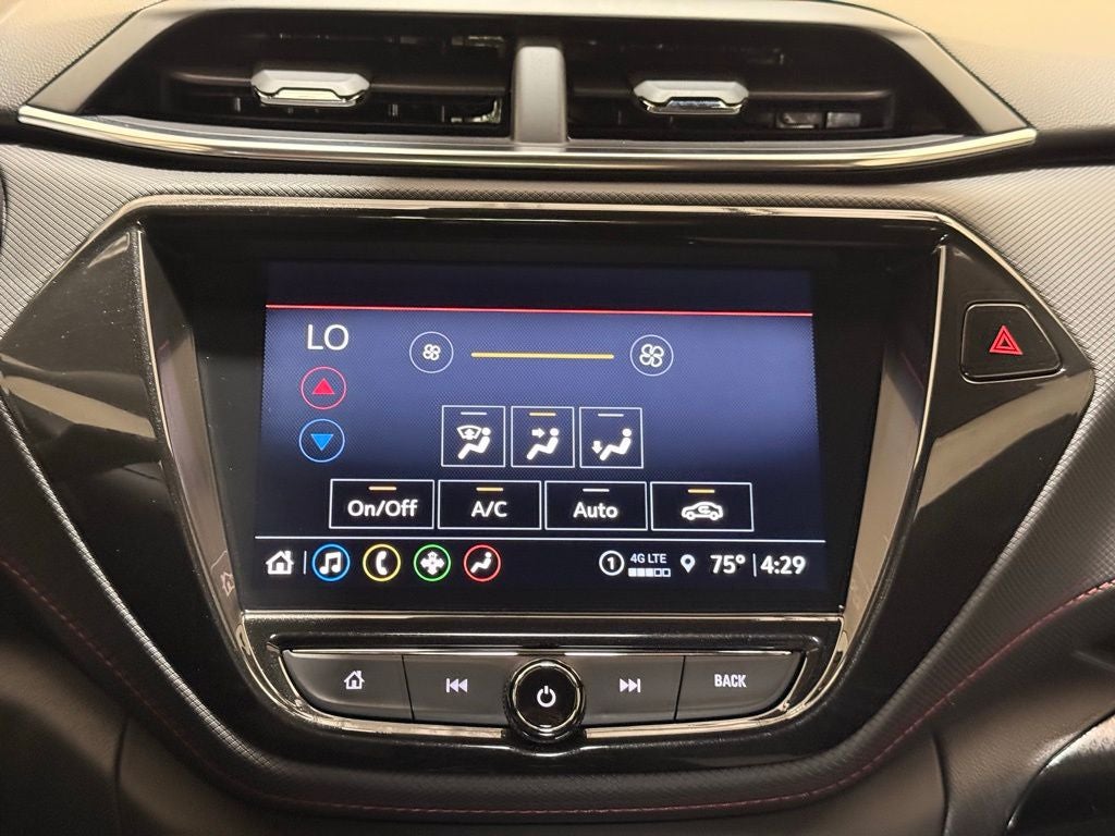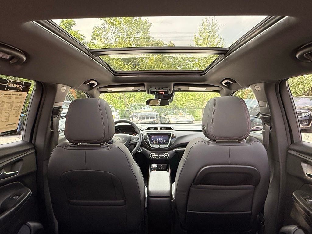 2023 Chevrolet TrailBlazer AWD 1.3L Ecotec Turbo DOHC SIDI w/VVT 9-Speed Automatic 4D Sport Utility, 1.3L Ecotec Turbo DOHC SIDI w/VVT, 9-Speed Automatic, AWD, Crimson Metallic, Jet Black With Red Accents Cloth, 1 Type-A & 1 Type-C USB Charging-Only Ports, 120-Volt Power Outlet, 2-Way Adjustable Front Head Restraints, 2-Way Power Driver Lumbar Seat Adjuster, 3.17 Axle Ratio, 4-Way Manual Front Passenger Seat Adjuster, 4-Wheel Disc Brakes, 4.2 Diagonal Multi-Color Driver Info Center, 6 Speakers, 6-Speaker Audio System Feature w/Amplifier, 7 Diagonal Color Touchscreen, 8-Way Power Driver Seat Adjuster, 8 Diagonal Color Touchscreen Display, ABS brakes, Adaptive Cruise Control, Air Conditioning, Alloy wheels, AM/FM radio: SiriusXM, Auto High-beam Headlights, Bose Premium 7-Speaker Audio System Feature, Brake assist, Bumpers: body-color, Cabin Humidity Sensor, Cargo Mat, Cloth w/Leatherette Seat Trim, Compass, Convenience Package, Delay-off headlights, Driver & Front Passenger Illuminated Vanity Mirrors, Driver Confidence Package, Driver door bin, Driver vanity mirror, Dual front impact airbags, Dual front side impact airbags, Dual-Pane Panoramic Power Sunroof, Electronic Stability Control, Emergency communication system: OnStar and Chevrolet connected services capable, Exterior Parking Camera Rear, Flat-Folding Front Passenger Seatback, Front & Rear All-Weather Floor Liners (LPO), Front anti-roll bar, Front Bucket Seats, Front Center Armrest, Front fog lights, Front License Plate Bracket, Front reading lights, Front wheel independent suspension, Fully automatic headlights, Hands-Free Power Programmable Liftgate, HD Radio, HD Rear Vision Camera, Heated door mirrors, Heated Driver & Front Passenger Seats, Heated front seats, Heated Steering Wheel, Heated steering wheel, Illuminated entry, Inside Rear-View Auto-Dimming Mirror, Knee airbag, Lane Change Alert w/Side Blind Zone Alert, Leather Shift Knob, Leather steering wheel, LED Headlamps, Low tire pressure warning, Memory Card Receptacle, Mosaic Black Metallic Two-Tone Roof, Not Equipped w/Rear Park Assist (060), Occupant sensing airbag, Overhead airbag, Overhead console, Panic alarm, Passenger door bin, Passenger vanity mirror, Power door mirrors, Power driver seat, Power steering, Power windows, Preferred Equipment Group 1RS, Radio data system, Radio: Chevrolet Infotainment 3 Plus System, Radio: Chevrolet Infotainment 3 System, Rear Cross Traffic Alert, Rear Park Assist, Rear seat center armrest, Rear side impact airbag, Rear window defroster, Rear window wiper, Remote keyless entry, Ride & Handling Suspension, Security system, Single-Zone Auto Climate Control Air Conditioning, SiriusXM w/360L, Speed control, Split folding rear seat, Spoiler, Steering wheel mounted audio controls, Sun & Liftgate Package, Tachometer, Technology Package, Telescoping steering wheel, Tilt steering wheel, Traction control, Trip computer, Variably intermittent wipers, Wheels: 18 High Gloss Black Machined Aluminum, Wireless Apple CarPlay/Android Auto, Wireless Charging. CARFAX One-Owner. Clean CARFAX.