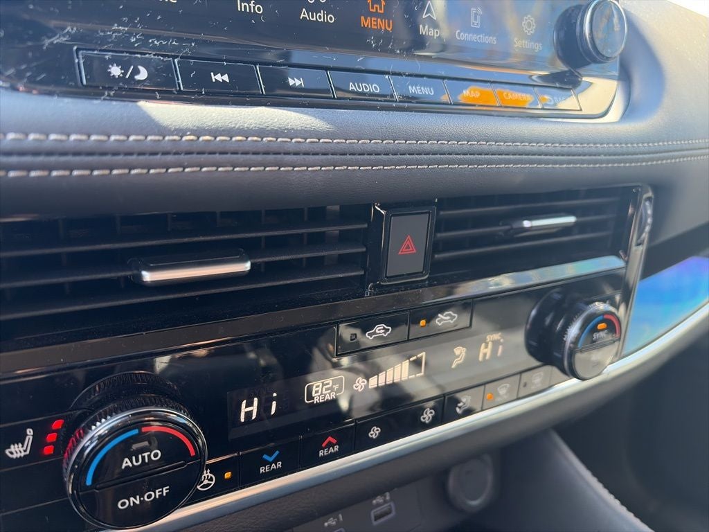 19 Aluminum Alloy Wheels, 4-Wheel Disc Brakes, 5.604 Axle Ratio, 6 Speakers, ABS brakes, Air Conditioning, Alloy wheels, AM/FM Radio, AM/FM radio: SiriusXM, Auto High-beam Headlights, Auto-dimming Rear-View mirror, Automatic temperature control, Black Splash Guards (Set of 4), Bose Premium Audio System, Brake assist, Bumpers: body-color, Chrome Rear Bumper Protector, Delay-off headlights, Driver door bin, Driver vanity mirror, Dual front impact airbags, Dual front side impact airbags, Electronic Stability Control, Emergency communication system: NissanConnect Services, External Ground Lighting, First Aid Kit, Floor Mats w/2-Piece Cargo Area Protector, Four wheel independent suspension, Frameless Rearview Mirror w/Universal Remote, Front anti-roll bar, Front Bucket Seats, Front Center Armrest, Front dual zone A/C, Front reading lights, Front, Side & Rear Sonar, Fully automatic headlights, Heated door mirrors, Heated Front Bucket Seats, Heated front seats, Heated steering wheel, Illuminated entry, Interior Accent Lighting, Knee airbag, Leather steering wheel, Leather-Appointed Seat Trim, Low tire pressure warning, Memory seat, Motion Activated Power Liftgate, NissanConnect featuring Apple CarPlay and Android Auto, Occupant sensing airbag, Outside temperature display, Overhead airbag, Overhead console, Panic alarm, Passenger door bin, Passenger vanity mirror, Power door mirrors, Power driver seat, Power Liftgate, Power moonroof, Power passenger seat, Power steering, Power windows, ProPILOT Assist w/Navi-link, Radio data system, Radio: AM/FM NissanConnect w/Navigation, Rear anti-roll bar, Rear Door Sunshades, Rear Parking Sensors, Rear reading lights, Rear seat center armrest, Rear side impact airbag, Rear window defroster, Rear window wiper, Remote keyless entry, Retractable Cargo Cover, Security system, SL Premium Package, Speed control, Speed-Sensitive Wipers, Split folding rear seat, Spoiler, Steering wheel mounted audio controls, Tachometer, Telescoping steering wheel, Tilt steering wheel, Traction control, Traffic Sign Recognition, Tri-Zone HVAC, Trip computer, Turn signal indicator mirrors, USB Charging Cable Set - Nissan, Variably intermittent wipers.