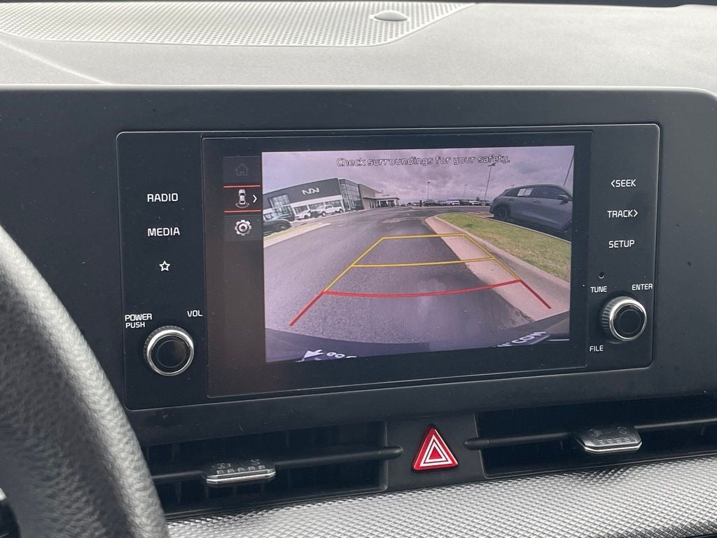 KIA Certified Eligible Certified, 17 Alloy Wheels, 4-Wheel Disc Brakes, 6 Speakers, ABS brakes, Air Conditioning, Alloy wheels, AM/FM radio, Auto High-beam Headlights, Axle Ratio: 3.648, Brake assist, Bumpers: body-color, Carpeted Floor Mats, Cloth Seat Trim, Delay-off headlights, Driver door bin, Driver vanity mirror, Dual front impact airbags, Dual front side impact airbags, Electronic Stability Control, Four wheel independent suspension, Front anti-roll bar, Front Bucket Seats, Front Center Armrest, Fully automatic headlights, Illuminated entry, Low tire pressure warning, Occupant sensing airbag, Outside temperature display, Overhead airbag, Overhead console, Panic alarm, Passenger door bin, Passenger vanity mirror, Power door mirrors, Power steering, Power windows, Radio: AM/FM/HD Audio System, Rear anti-roll bar, Rear seat center armrest, Rear side impact airbag, Rear window defroster, Rear window wiper, Remote keyless entry, Security system, Speed control, Speed-sensing steering, Split folding rear seat, Spoiler, Steering wheel mounted audio controls, Tachometer, Telescoping steering wheel, Tilt steering wheel, Traction control, Trip computer, Variably intermittent wipers.