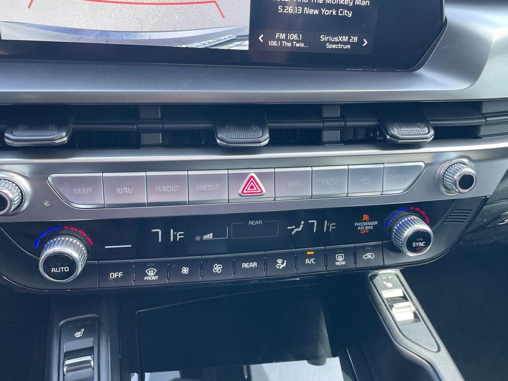 KIA Certified Eligible Certified, 3.510 Axle Ratio, 3rd row seats: split-bench, 4-Wheel Disc Brakes, 6 Speakers, ABS brakes, Air Conditioning, Alloy wheels, AM/FM radio: SiriusXM, Apple CarPlay & Android Auto, Auto High-beam Headlights, Automatic temperature control, Brake assist, Bumpers: body-color, Carpet Floor Mats, Cross Bars, Delay-off headlights, Driver door bin, Driver vanity mirror, Dual front impact airbags, Dual front side impact airbags, Electronic Stability Control, Emergency communication system: 911 Connect, Exterior Parking Camera Rear, Four wheel independent suspension, Front anti-roll bar, Front Bucket Seats, Front Center Armrest, Front dual zone A/C, Front reading lights, Fully automatic headlights, Heated door mirrors, Heated Front Bucket Seats, Heated front seats, Illuminated entry, Knee airbag, Leather Shift Knob, Leather steering wheel, Low tire pressure warning, Navigation System, Occupant sensing airbag, Outside temperature display, Overhead airbag, Overhead console, Panic alarm, Passenger door bin, Passenger vanity mirror, Power door mirrors, Power driver seat, Power steering, Power Sunroof w/Sunshade, Power windows, Radio data system, Radio: AM/FM Display Audio System, Rear air conditioning, Rear anti-roll bar, Rear audio controls, Rear reading lights, Rear side impact airbag, Rear window defroster, Rear window wiper, Reclining 3rd row seat, Remote keyless entry, Roof rack: rails only, S Sunroof Package, Security system, Smart Key w/ Push Button and Remote Start, Speed control, Speed-sensing steering, Split folding rear seat, Spoiler, Steering wheel mounted audio controls, SynTex Synthetic Leather Seat Trim, Tachometer, Telescoping steering wheel, Tilt steering wheel, Traction control, Trip computer, Turn signal indicator mirrors, Variably intermittent wipers, Wheels: 20 x 7.5 Black Finish.