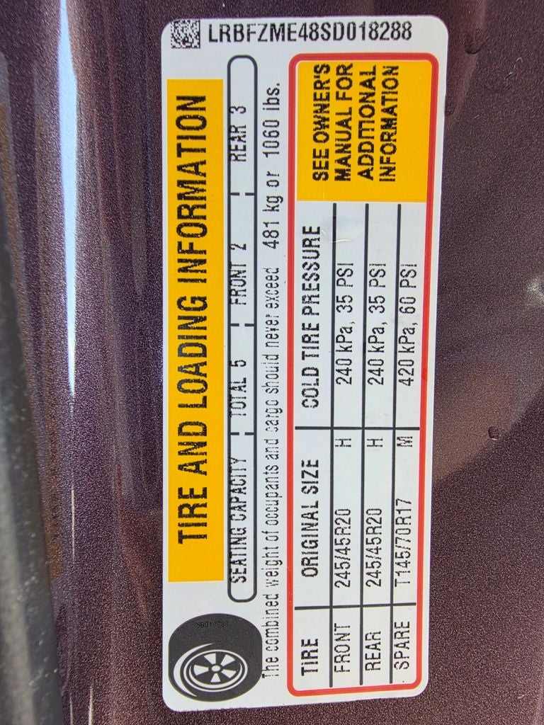 - Tires, P245/45R20 all-season