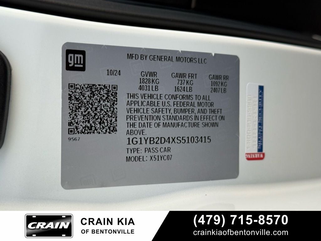 Clean Carfax, 14 Speakers, 2 Cargo Nets, 4-Wheel Disc Brakes, 8-Way Power Driver Seat Adjuster, 8-Way Power Passenger Seat Adjuster, ABS brakes, Air Conditioning, All-Weather Floor Liners w/Jake Logo (LPO), Alloy wheels, AM/FM radio: SiriusXM, Auto High-beam Headlights, Auto-dimming door mirrors, Auto-dimming Rear-View mirror, Automatic Leveling System Headlamp Control, Automatic temperature control, Body-Color Exterior Accents, Body-Color Removable Roof Panel, Bose Performance Series Sound System w/14 Speakers, Brake assist, Bumpers: body-color, Compass, Delay-off headlights, Driver door bin, Driver Power Bolster Seat Adjuster, Driver vanity mirror, Dual front impact airbags, Dual front side impact airbags, Edge Red LT2 Engine Cover, Edge Red-Painted Calipers, Electrical Theft Deterrent System, Electronic Stability Control, Emergency communication system: OnStar and Chevrolet connected services capable, Engine Lighting, Exterior Parking Camera Rear, Four wheel independent suspension, Front anti-roll bar, Front Bucket Seats, Front Center Armrest, Front dual zone A/C, Front License Plate Bracket, Front Lift Adjustable Height w/Memory, Front reading lights, Fully automatic headlights, Garage door transmitter, GT1 Bucket Seats, HD Front & Rear Vision Cameras, Head-Up Display, Heated & Vented Driver & Passenger Seats, Heated door mirrors, Heated front seats, Heated Steering Wheel, Heated steering wheel, Illuminated entry, Leather Shift Knob, Leather steering wheel, Low tire pressure warning, Magnetic Selective Ride Control Suspension, Memory Driver & Passenger Convenience Package, Memory seat, Mulan Lthr Seating Surfaces w/Perforated Inserts, Navigation System, Occupant sensing airbag, Outside temperature display, Overhead console, Panic alarm, Passenger door bin, Passenger Power Bolster Seat Adjuster, Passenger vanity mirror, Performance Data & Video Recorder, Performance Exhaust w/Stainless-Steel Tips, Power door mirrors, Power Driver Lumbar Control Seat Adjuster, Power driver seat, Power Passenger Lumbar Control Seat Adjuster, Power passenger seat, Power steering, Power windows, Power-Adjustable Outside Heated Mirrors, Preferred Equipment Group 2LT, Premium audio system: Chevrolet Infotainment 3 Premium, Radio data system, Radio: Chevrolet Infotainment 3 Premium System, Rear anti-roll bar, Rear Cross Traffic Alert, Rear window defroster, Remote keyless entry, Security system, Side Blind Zone Alert, Speed control, Speed-sensing steering, Sport steering wheel, Steering wheel memory, Steering wheel mounted audio controls, Tachometer, Telescoping steering wheel, Tilt steering wheel, Traction control, Trip computer, Turn signal indicator mirrors, Universal Home Remote, Variably intermittent wipers, Vehicle Inclination Theft Deterrent Sensor, Vehicle Interior Movement Theft Deterrent Sensor, Ventilated front seats, Voltmeter, Wheels: 19 x 8.5 Fr/20 x 11 Rr Bright Silver, Wireless Charging for Devices.