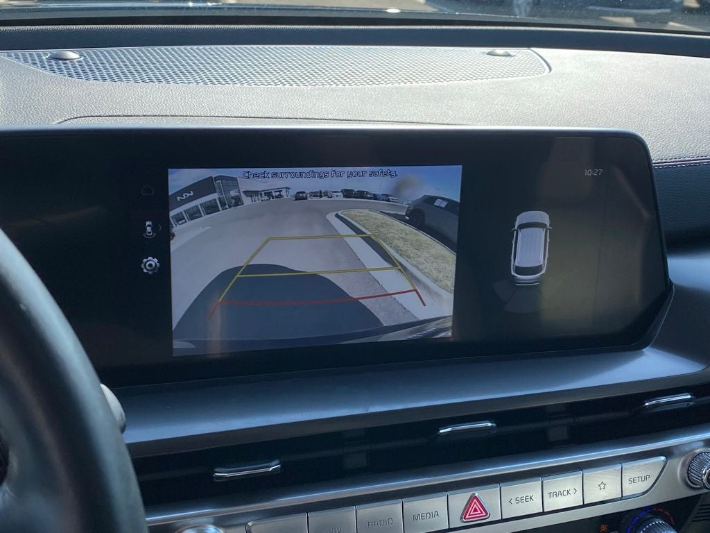 KIA Certified Eligible Certified, 3rd row seats: split-bench, 4-Wheel Disc Brakes, 6 Speakers, ABS brakes, Air Conditioning, Alloy wheels, AM/FM radio: SiriusXM, Apple CarPlay & Android Auto, Auto High-beam Headlights, Automatic temperature control, Brake assist, Bumpers: body-color, Carpeted Floor Mats, Cross Bars, Delay-off headlights, Driver door bin, Driver vanity mirror, Dual front impact airbags, Dual front side impact airbags, Electronic Stability Control, Emergency communication system: 911 Connect, Exterior Parking Camera Rear, Four wheel independent suspension, Front anti-roll bar, Front Bucket Seats, Front Center Armrest, Front dual zone A/C, Front reading lights, Fully automatic headlights, Heated door mirrors, Heated Front Bucket Seats, Heated front seats, Illuminated entry, Knee airbag, Leather Shift Knob, Leather steering wheel, Low tire pressure warning, Navigation System, Occupant sensing airbag, Outside temperature display, Overhead airbag, Overhead console, Panic alarm, Passenger door bin, Passenger vanity mirror, Power door mirrors, Power driver seat, Power Liftgate, Power moonroof, Power steering, Power windows, Radio data system, Radio: AM/FM Display Audio System, Rear air conditioning, Rear anti-roll bar, Rear audio controls, Rear reading lights, Rear side impact airbag, Rear window defroster, Rear window wiper, Reclining 3rd row seat, Remote keyless entry, Security system, Speed control, Speed-sensing steering, Split folding rear seat, Spoiler, Steering wheel mounted audio controls, SynTex Synthetic Leather Seat Trim, Tachometer, Telescoping steering wheel, Tilt steering wheel, Traction control, Trip computer, Turn signal indicator mirrors, Variably intermittent wipers, Wheels: 20 x 7.5 Black Finish.