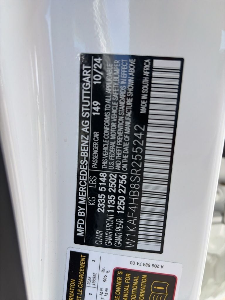 2025 Mercedes- Benz, C 300 4MATIC®, 4D Sedan, 2.0L I4 Turbocharged, 9-Speed Automatic, 4MATIC®, Macchiato Beige Leatherette, 11.9 Center Touchscreen Display, 18 5-Spoke Wheels, 4-Wheel Disc Brakes, 5 Speakers, ABS brakes, Air Conditioning, Alloy wheels, Anti-whiplash front head restraints, Apple CarPlay®/Android Auto®, Auto High-beam Headlights, Auto tilt-away steering wheel, Auto-dimming door mirrors, Auto-dimming Rear-View mirror, Automatic temperature control, Brake assist, Bumpers: body-color, Burmester® 3D Surround Sound System, Child-Seat-Sensing Airbag, Compass, Delay-off headlights, Driver door bin, Driver vanity mirror, Dual front impact airbags, Dual front side impact airbags, Electronic Stability Control, Emergency communication system: Mercedes-Benz Emergency Call Service, Exterior Parking Camera Rear, Four wheel independent suspension, Front anti-roll bar, Front Bucket Seats, Front Center Armrest, Front dual zone A/C, Front reading lights, Fully automatic headlights, Garage door transmitter: HomeLink, Genuine wood dashboard insert, Head restraints memory, Heated door mirrors, Heated front seats, Illuminated entry, Knee airbag, Leather steering wheel, Low tire pressure warning, Lumbar Support, MB-Tex Upholstery, Memory seat, Occupant sensing airbag, Outside temperature display, Overhead airbag, Overhead console, Panic alarm, Passenger door bin, Passenger vanity mirror, Power adjustable front head restraints, Power door mirrors, Power driver seat, Power Heated Front Seats with Memory, Power moonroof, Power passenger seat, Power steering, Power windows, Premium audio system: MBUX, Radio data system, Radio: FrontBass 5-Speaker Audio System, Rain sensing wipers, Rear anti-roll bar, Rear fog lights, Rear reading lights, Rear seat center armrest, Rear window defroster, Remote keyless entry, Security system, SiriusXM Satellite Radio, Sound Personalization, Speed control, Speed-sensing steering, Split folding rear seat, Steering wheel memory, Steering wheel mounted audio controls, Tachometer, Telescoping steering wheel, Tilt steering wheel, Traction control, Trip computer, Turn signal indicator mirrors, Variably intermittent wipers, Weather band radio.