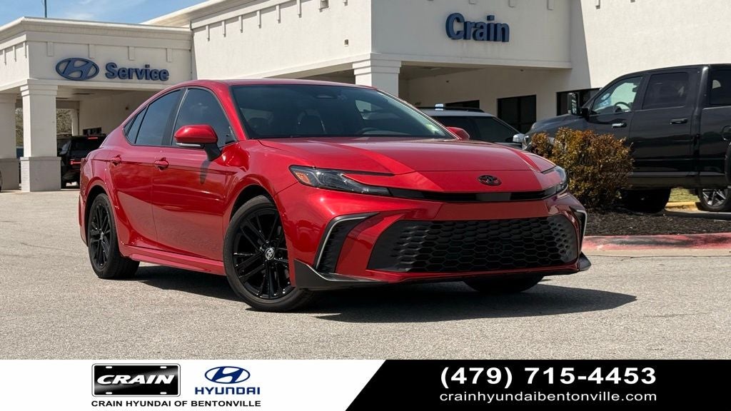 2025 Toyota Camry FWD 2.5L 4-Cylinder 16V DOHC eCVT Camry SE, 4D Sedan, 2.5L 4-Cylinder 16V DOHC, eCVT, FWD, Red, Boulder Premium Synthetic, 4-Wheel Disc Brakes, 6 Speakers, ABS brakes, Air Conditioning, AM/FM radio: SiriusXM, Automatic temperature control, Dual front impact airbags, Dual front side impact airbags, Emergency communication system: Safety Connect (up to 10-year trial subscription), Four wheel independent suspension, Front anti-roll bar, Front dual zone A/C, Knee airbag, Low tire pressure warning, Power driver seat, Power steering, Power windows, Radio data system, Radio: Toyota Audio Multimedia w/12.3 Touchscreen, Radio: Toyota Audio Multimedia w/8 Touchscreen, Rear window defroster, Remote keyless entry, Speed-sensing steering, Steering wheel mounted audio controls, Traction control. Clean CARFAX.